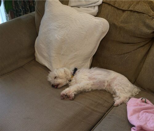 心配しないで下さい、生きてますよ(笑) 討ち死に状態ですけどね… ご飯の時だけ シャキッとします(笑) 14歳だから仕方ないですね。 見えてない、聞こえてない、その他諸々。 そのおばあちゃんっぷりが、家庭内に笑いを提供してくれているんです。 なんか…
